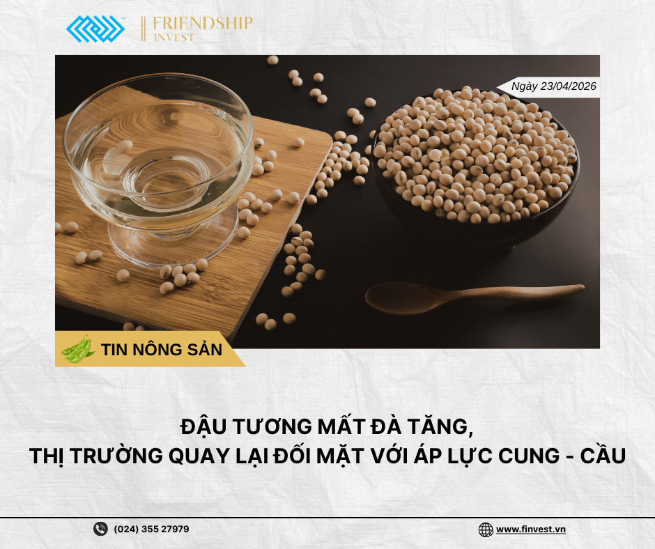 Trong bối cảnh lực hỗ trợ từ dầu đậu tương suy yếu, Giá đậu tương nhanh chóng quay đầu giảm trong phiên 22/4 sau khi không duy trì được đà tăng từ trước đó. Trong khi đó, nguồn cung dồi dào từ Brazil cùng với sức mua còn thận trọng tiếp tục tạo áp lực, khiến thị trường thiếu đi động lực để bứt phá.