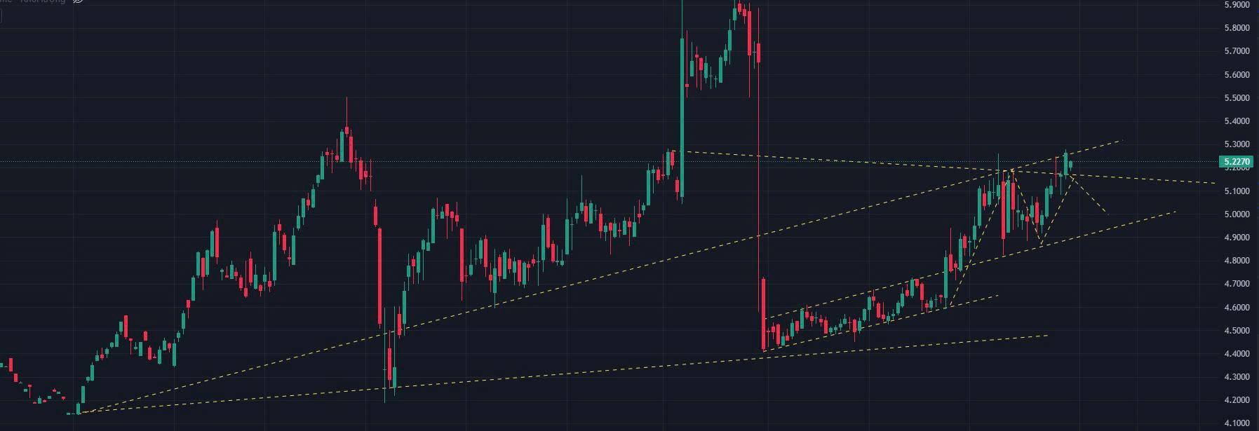 Phiên hôm nay (30/10), nếu duy trì trên 5.21, dự báo giá tiếp tục tăng và có thể lên 5.28, mạnh hơn có thể lên 5.33. Nếu giảm thủng 5.185, giá có thể điều chỉnh về lại 5.13.