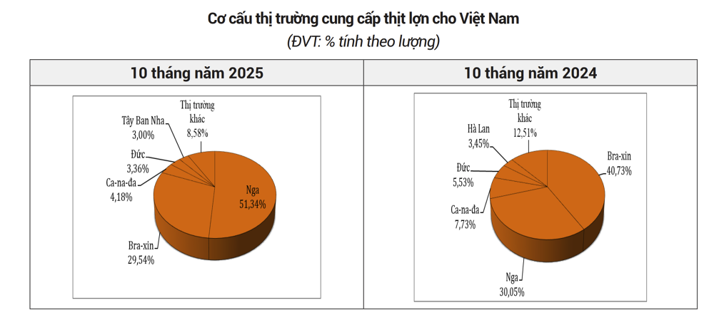 Các doanh nghiệp chủ yếu nhập khẩu heo từ Nga, với tỷ trọng khoảng 51%, tiếp đến là Brazil với 30%.