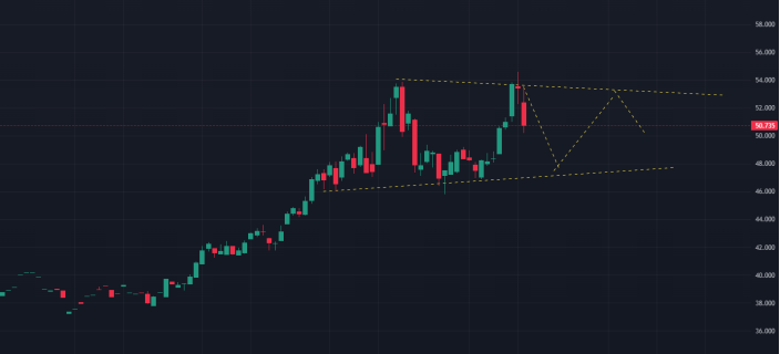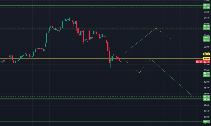 • Nếu đầu tuần tăng, vượt 51.4 dự báo giá tăng lên vùng 53.5 – 53.7 sau đó có nhịp điều chỉnh và giằng co.