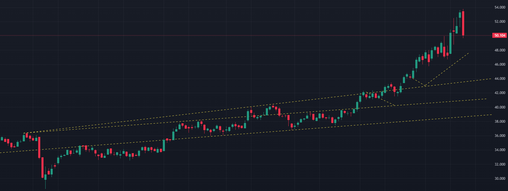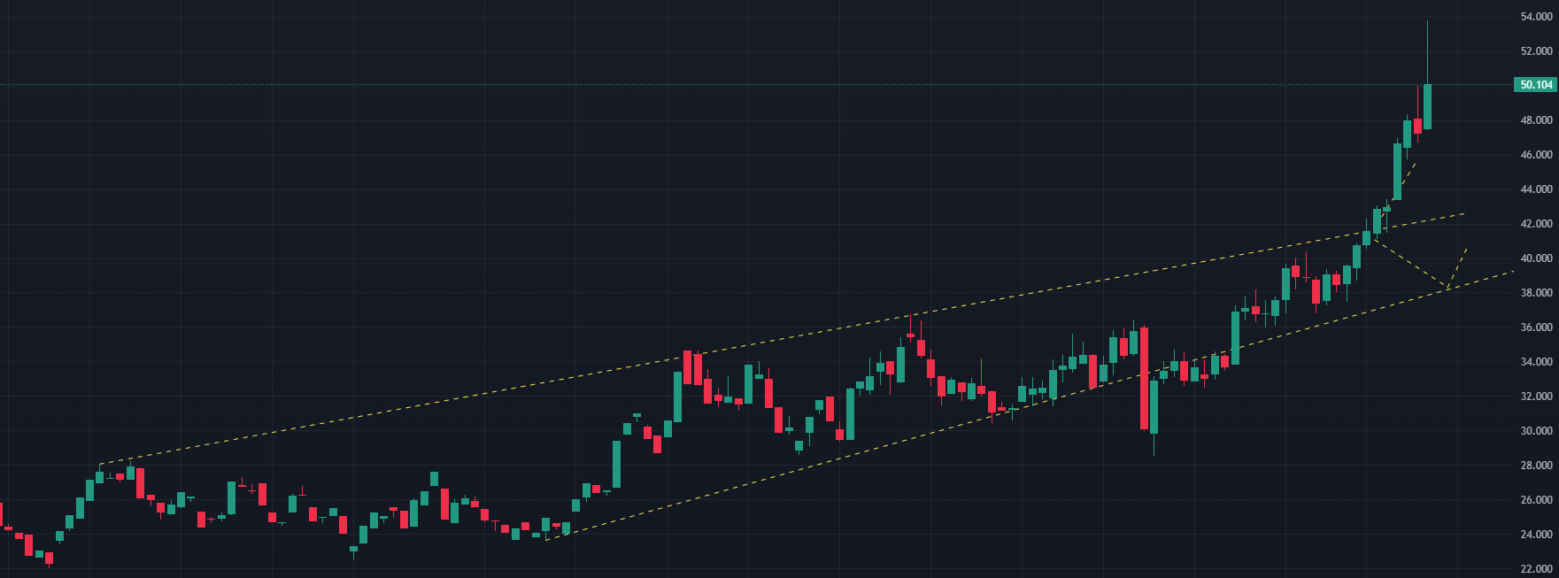 Giới đầu tư hiện đang theo dõi các mốc kỹ thuật quan trọng của giá bạc thế giới. Mức 50 USD/ounce được xem là vùng kháng cự mạnh, trong khi 45 USD/ounce đóng vai trò hỗ trợ chính. Nếu giá giữ vững được trên 50 USD, triển vọng trung hạn của thị trường bạc vẫn được đánh giá tích cực.