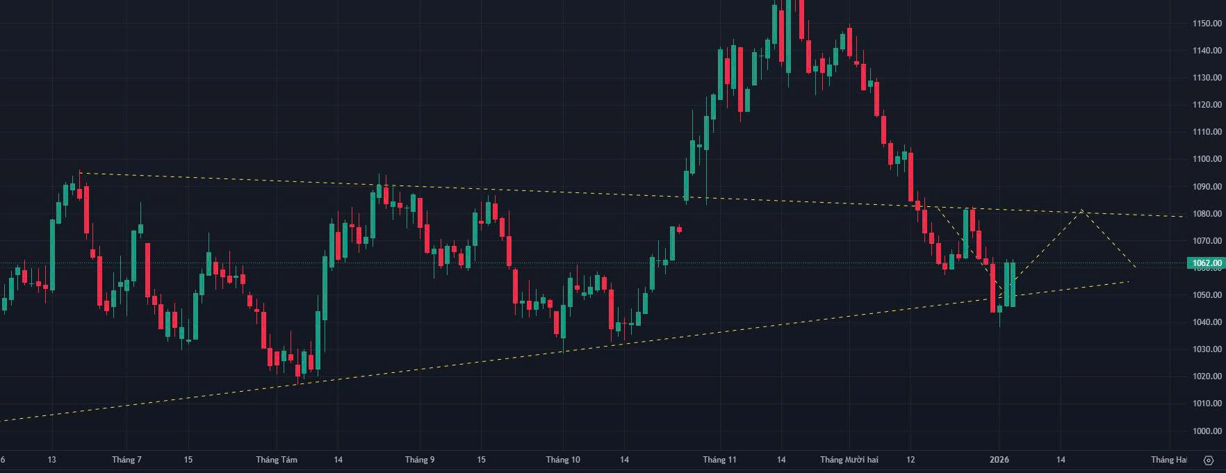 Trên khung 1D, về quanh vùng hỗ trợ kênh, giá Đậu tương kỳ hạn tháng 3/2026 (ZSEH26) đã đảo chiều tăng trở lại.