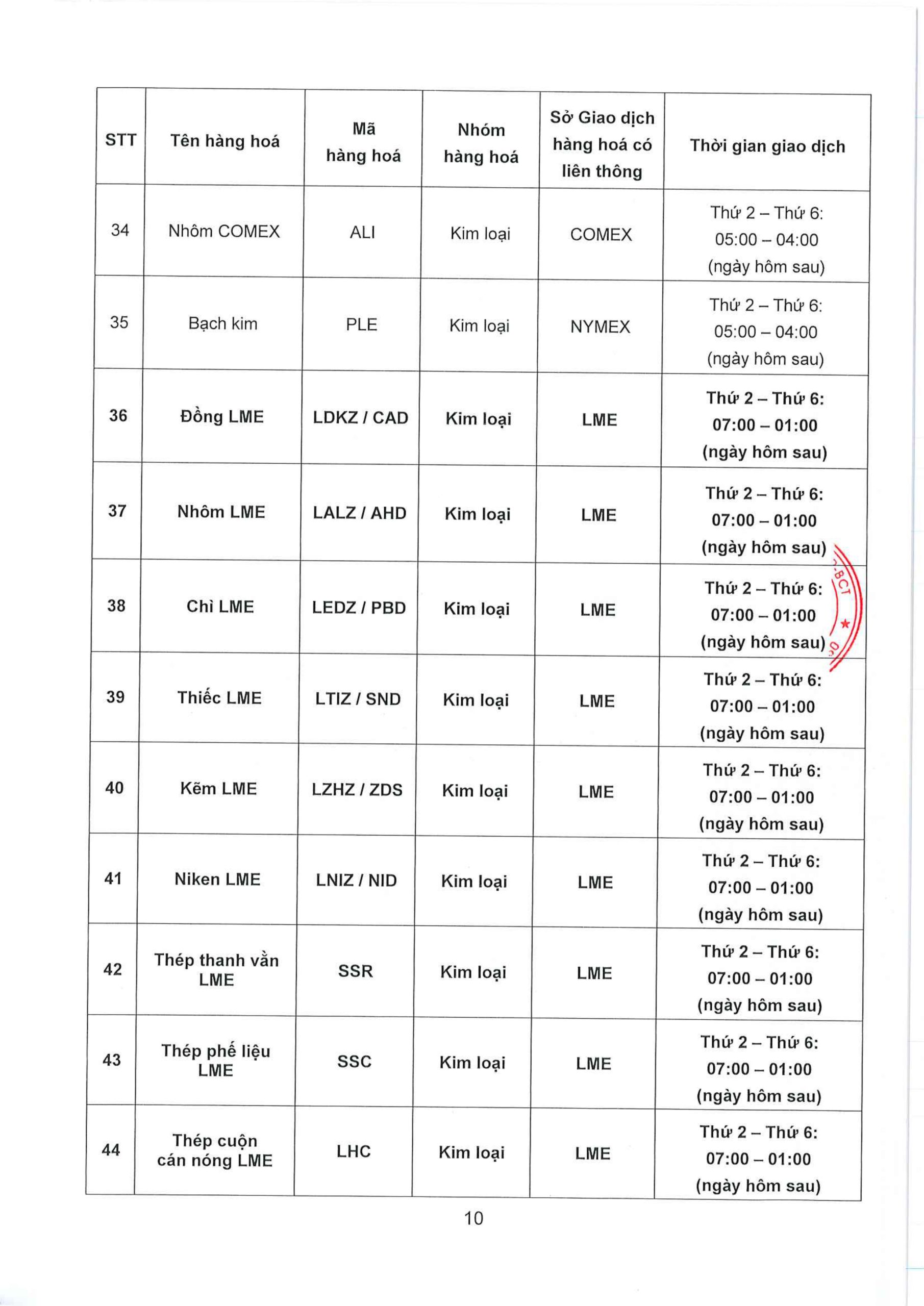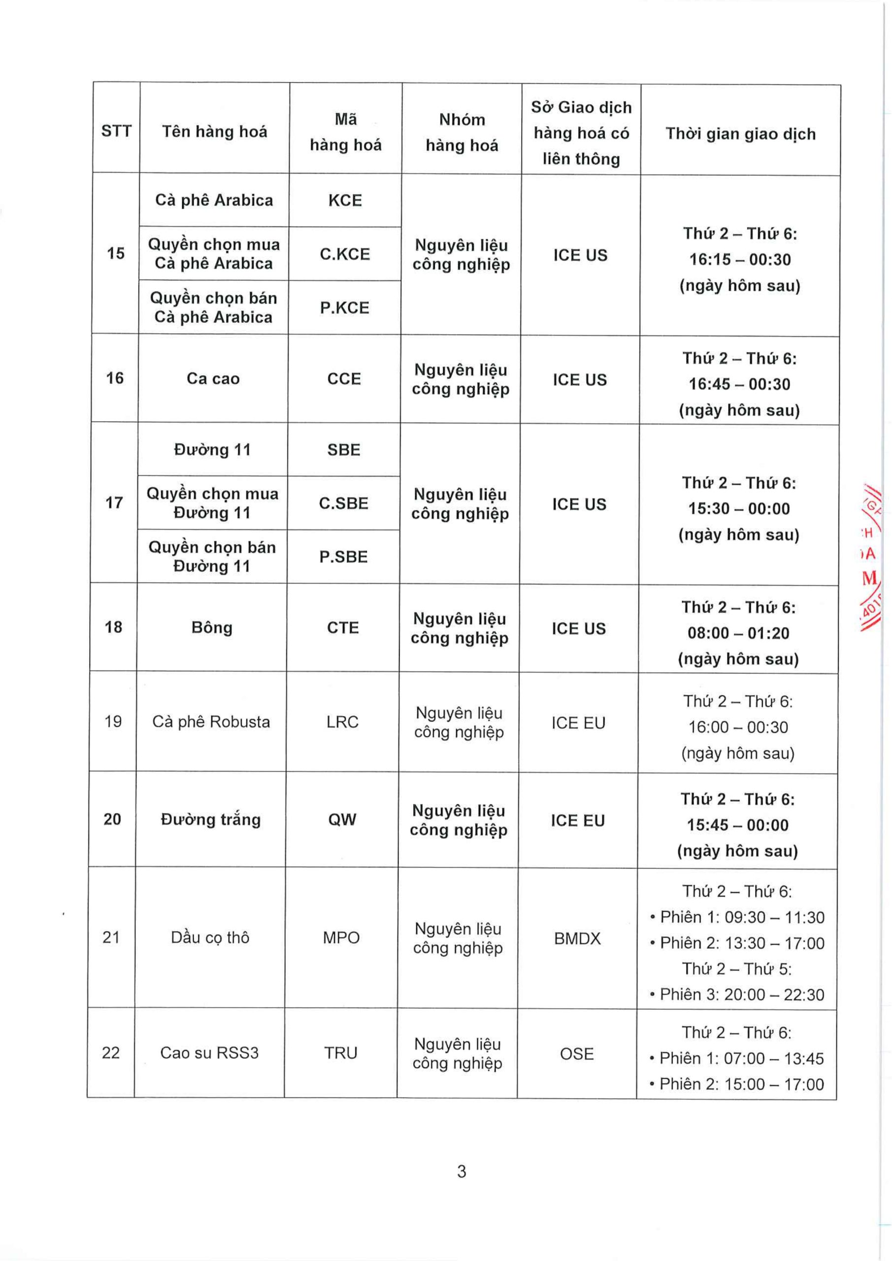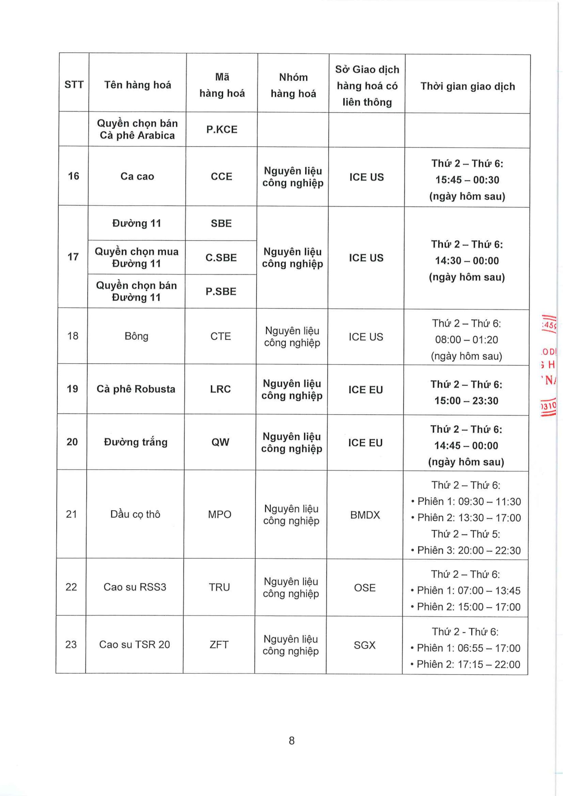 Thay đổi thời gian giao dịch các Hợp đồng Hàng hóa kể từ ngày 09/03/2025