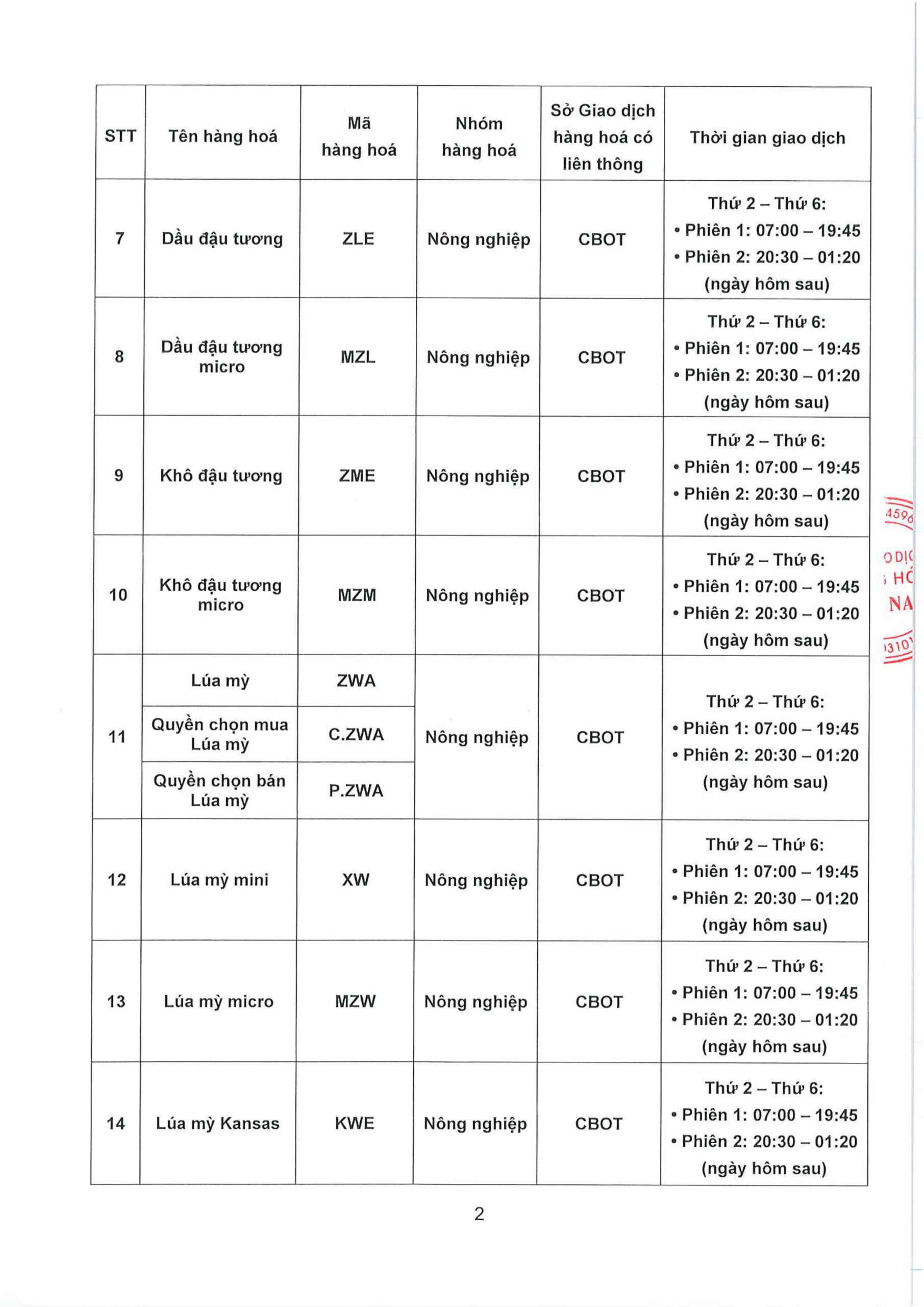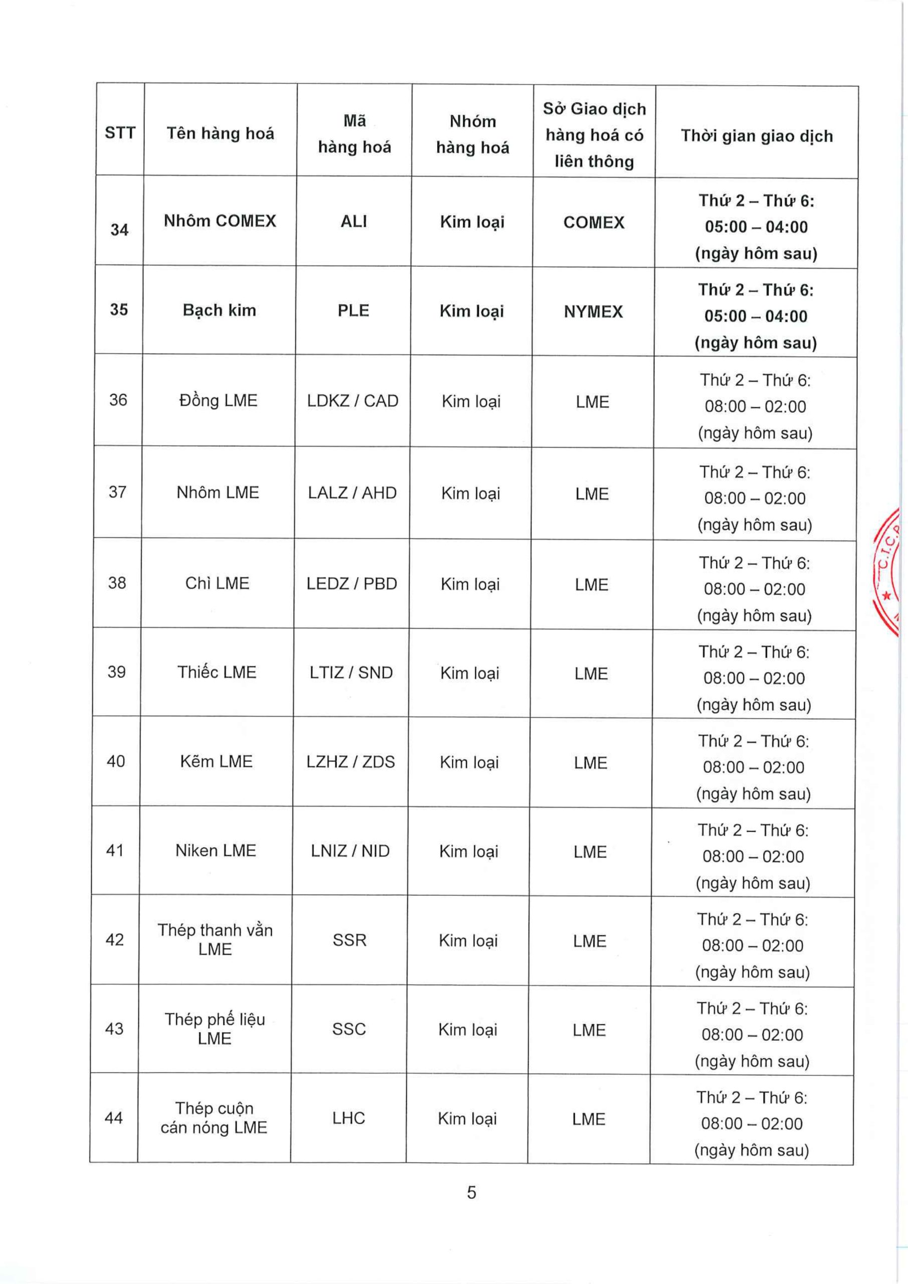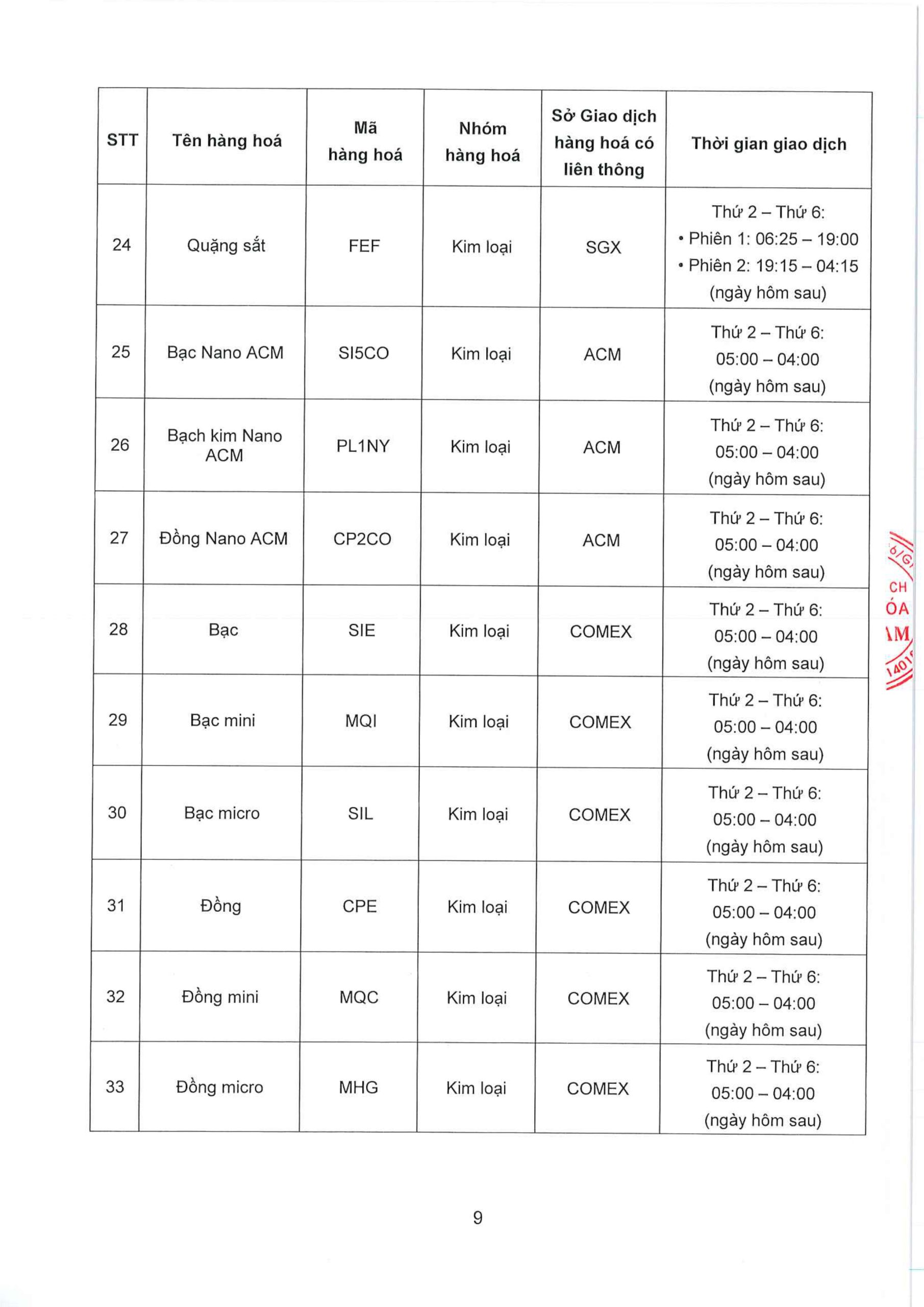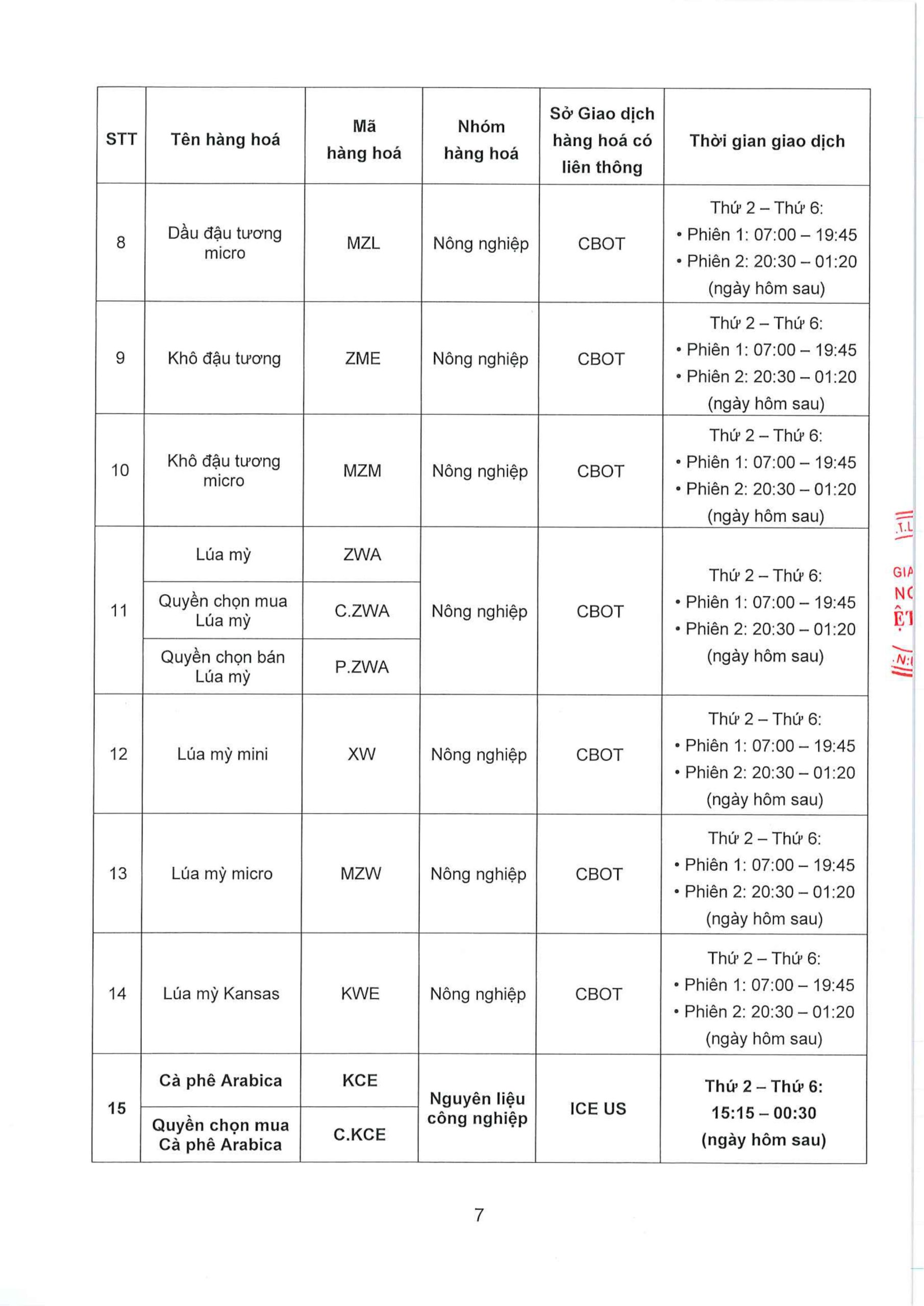 Thay đổi thời gian giao dịch các Hợp đồng Hàng hóa kể từ ngày 09/03/2025